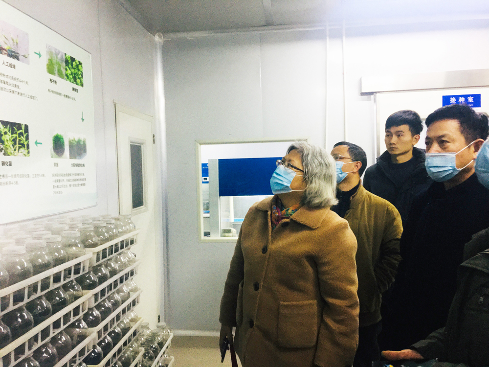 2月2日下午,宁波市老科技工作者协会会长王文玲一行7人,莅临我司调研工作,并对韵芝堂中小学学生中草药研学基地建立“银辉”科技教育志愿服务基地授牌。王会长一行首先实地参观考察我司铁皮石斛组培中心和种植基地,详细了解铁皮石斛组培、种植、加工、营销情况。公司董事长姚国祥陪同参观并就组培、种植、加工、销售及下步产品开发作简要介绍。