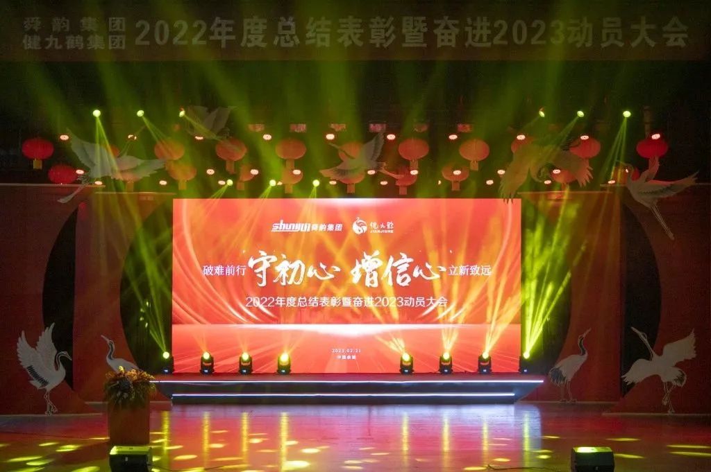 新年伊始,万象更新。为回顾总结2022年工作,部署新一年工作计划,以“守初心破难前行 增信心立新致远”为主题的舜韵集团与健九鹤集团2022年度总结表彰暨奋进2023动员大会年会于2023年2月21日在泗门镇影剧院隆重举行。舜韵集团、健九鹤集团董事长姚国祥,舜韵集团副总裁、舜韵电子总经理姚韵均,两大集团的高层领导及全体职工出席本次年会。总结会议由舜韵集团董事长办公室主任谢二莲主持。
