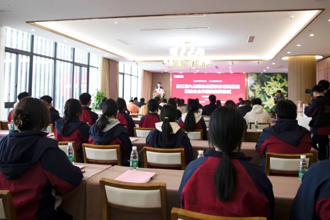 闰二月二又龙抬头,吉祥如意好彩头。 2023年3月23日下午在浙江健九鹤药业集团有限公司五楼综合会议室,举行了浙江健九鹤药业集团铁皮石斛直播暨校企合作签约仪式。泗门镇人民政府副镇长黄妙飞、余姚市第四职业技术学校党总支书记 、校长陶培聪、浙江健九鹤药业集团有限公司董事长姚国祥、余姚市第四职业技术学校副校长陈伟、浙江黑翼服饰有限公司总经理干品钦以及余姚市第四职业技术学校师生代表、浙江黑翼服饰有限公司的直播团队成员、浙江健九鹤药业集团有限公司有关人员出席参加本次活动。
