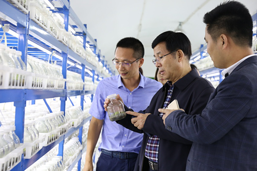 聘任仪式结束后,张松副总经理带领医学专家参观铁皮石斛的研发基地。韵芝堂采用当地高品质野生铁皮石斛为原种育苗,加之改造后形成特有环境的山洞培养室内进行育苗培养,使之野生育种的铁皮石斛能够得到更好的品质保证。