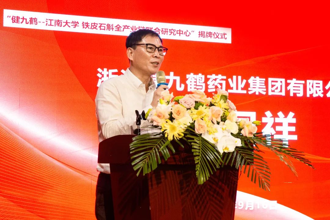 发布时间:2023-09-17 点击量:12572023年9月16日,“健九鹤--江南大学 铁皮石斛全产业链联合研究中心”揭牌仪式在浙江健九鹤药业集团有限公司(以下简称健九鹤)会议室召开。该联合研究中心由江南大学余达威教授团队和浙江健九鹤药业集团有限公司共同发起,双方将在资源共享、互利共赢、共同发展的基础上建立校企全面研发和生产机制的合作模式,共同推进铁皮石斛产业化发展。