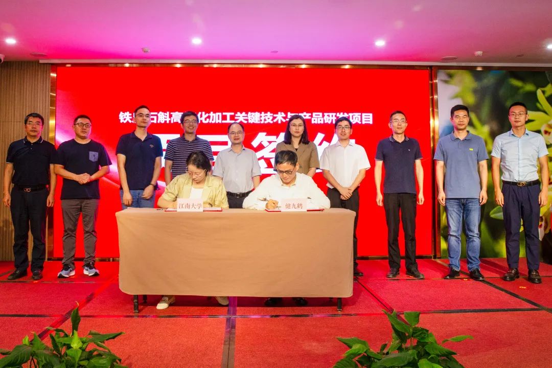 签约揭牌仪式后,校政企对未来的发展寄与厚望,相信借助江南大学科研力量和浙江健九鹤药业集团有限公司的企业实力,联合研究中心将在技术创新、资源共享、人才培训交流等方面全面展开深度合作,不断延伸优化铁皮石斛整个产品研发生产链。