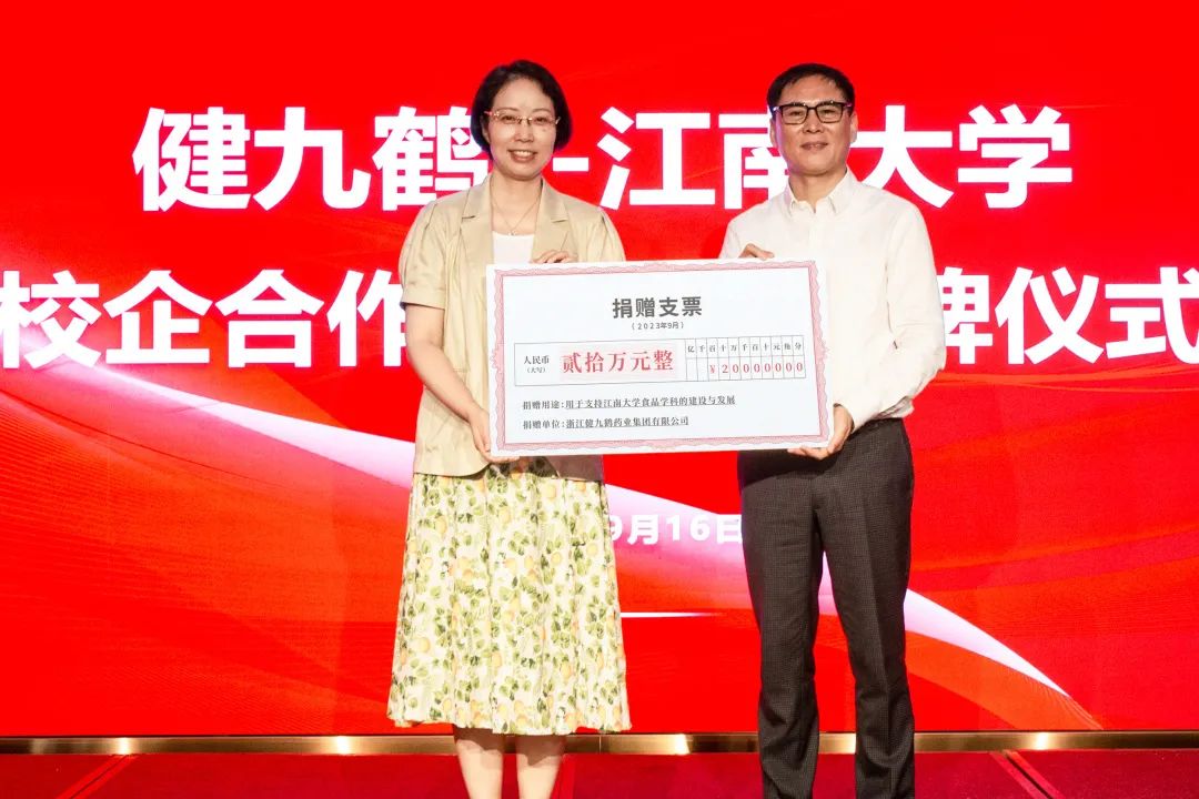 随后,双方进行了校企战略合作签约揭牌仪式及20万元的支持江南大学食品学科建设与发展捐赠仪式。