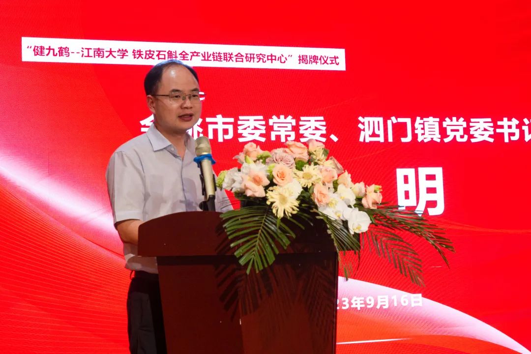 余姚市委常委、泗门镇党委书记张明指出了江南大学与健九鹤的强强合作的必要性及重要性,表示此次联合研究中心的成立是泗门镇现代农业发展的里程碑,并希望江南大学能够在技术攻关及人才培养等方面予以企业更多帮助。