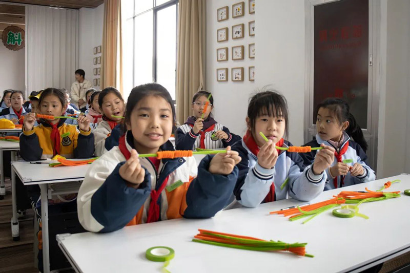 研学尾声的"柿柿如意"创意工坊成为想象力迸发的舞台。学生们将手中的扭扭棒扭啊扭,绕啊绕,铸就一个个完美的作品。指导教师介绍:"这些融合传统元素的手工作品,将作为'非遗小信使'在校园展览中继续传播中医药文化。"