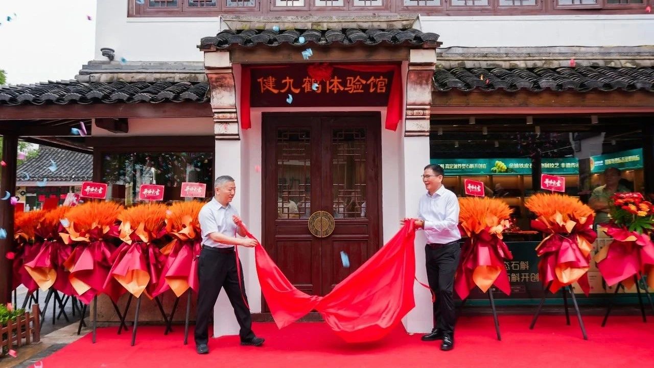 清晨八时,伴随着铿锵的锣鼓声,健九鹤体验馆在阳明古镇揭开面纱。舞狮吐出的“开馆大吉”横幅与揭匾仪式相映成趣,中国农技协科技小院联盟理事长张建华、浙江健九鹤集团董事长姚国祥分别致辞祝贺!彩带纷飞间,一座融合中医药文化与现代消费体验的“活态博物馆”正式向公众开放。