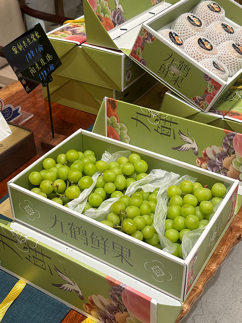 九鹤鲜果,精选当季自种阳光玫瑰与果斛共生蜜梨。圆润饱满的绿色葡萄,宛如颗颗绿宝石,散发着清新果香,咬上一口,汁水四溢,满是自然的清甜;还有那被细致包裹的秋月梨,表皮光滑,内里冰糖润心,光是看着就令人心生期待,尝上一瓣,便能感受那梨肉的细腻与清甜滋润。无论是补充维生素,还是在候机时作为美味小食,都再合适不过。