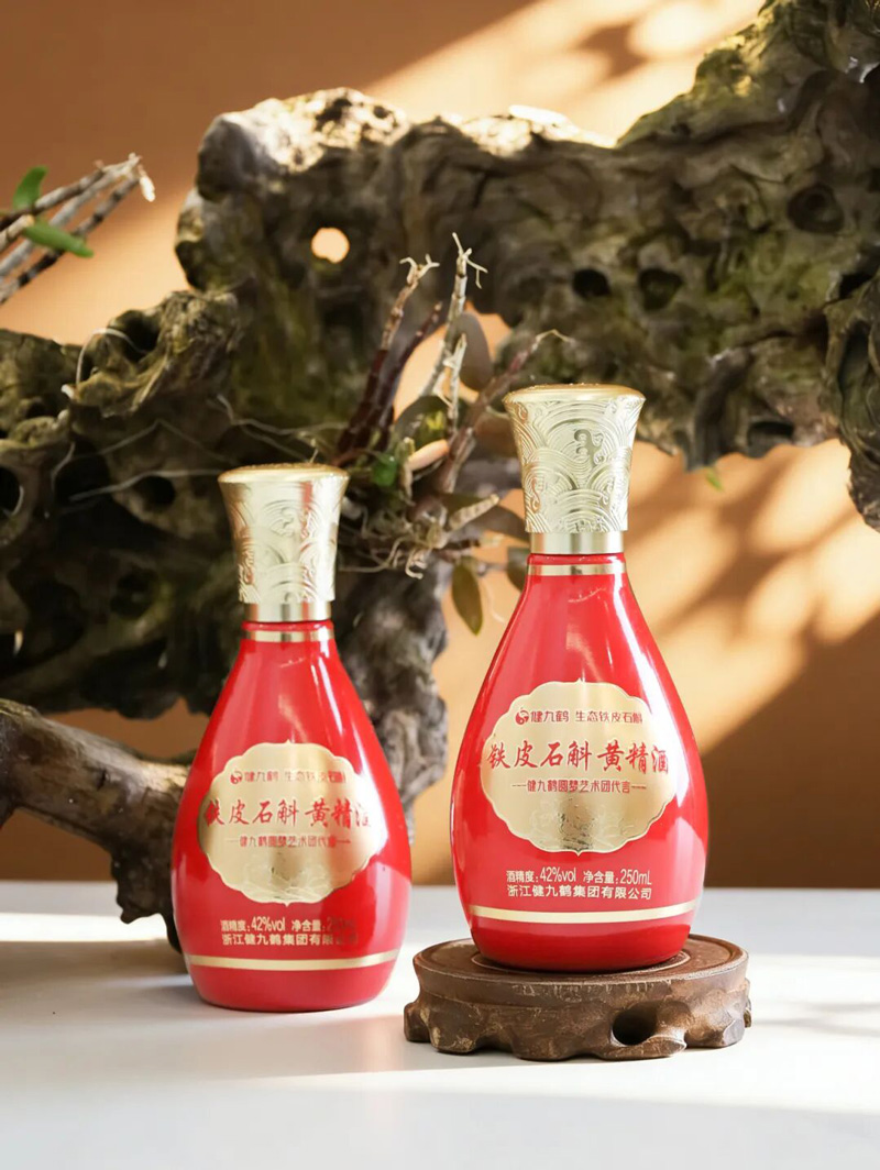当举杯为致敬每个仍在前行的梦想——健九鹤·铁皮石斛黄精酒,致敬始终追寻光芒的你我。以北纬30°铁皮石斛与九蒸九晒黄精,融入纯粮基酒,经五年洞藏,酒体温润如琥珀。入口绵柔,回甘悠长。双瓶礼盒宜赠宜藏,宴席显格局,私享伴心安。谨以此杯,共敬坚持。