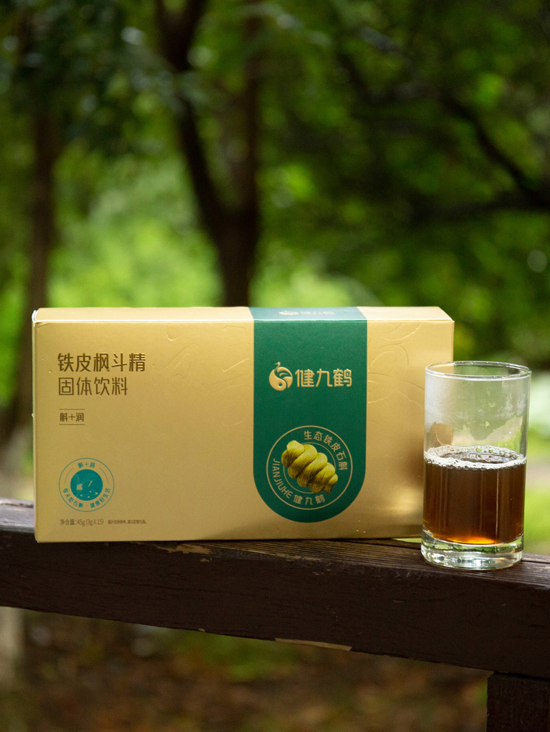 当举杯不仅为欢庆,更为致敬每个仍在前行的梦想——健九鹤·铁皮石斛黄精酒,谨以本品,致敬始终追寻光芒的你我。健九鹤圆梦艺术团倾情代言,共呈此杯滋养之礼。