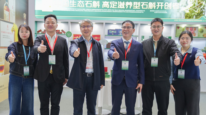 展位上备受青睐的明星产品矩阵尤为亮眼:2023年获评“宁波特色伴手礼”的铁皮石斛花茶,精选北纬30度基地有机铁皮石斛花,经人工采摘专利烘焙而成,小袋礼盒装便携易存,冲泡后花香清甜,花型完整;2024 年双料荣誉加身的铁皮石斛红曲茶,不仅摘得“浙江特色伴手礼”称号,更入选“宁波特色伴手礼”,其以余姚铁皮石斛搭配苦荞与红曲发酵,茶汤琥珀透亮,入口回甘生津,成为现场试饮区的“爆款”;2024年入选“浙江省十大药膳”的铁皮石斛蜜梨白兰地,融合四明山余姚铁皮石斛与本地蜜梨精华,经橡木桶陈酿而成,开瓶即散发淡雅果香与木香,醇厚口感让品鉴者赞不绝口;2025 年新获“宁波特色伴手礼”的第三代铁皮枫斗精,以铁皮石斛与西洋参科学配比,独立小包装设计适配都市快节奏生活,温开水冲泡即可实现“气阴双补”;更有铁皮石斛精酿啤酒凭借“低温萃取 同步发酵”融入铁皮石斛多糖、氨基酸等活性成分的健康属性脱颖而出,成为养生党青睐的新潮饮品。这些屡获殊荣的产品与铁皮石斛外泌体抗衰系列新品交相辉映,让展位人气持续高涨。