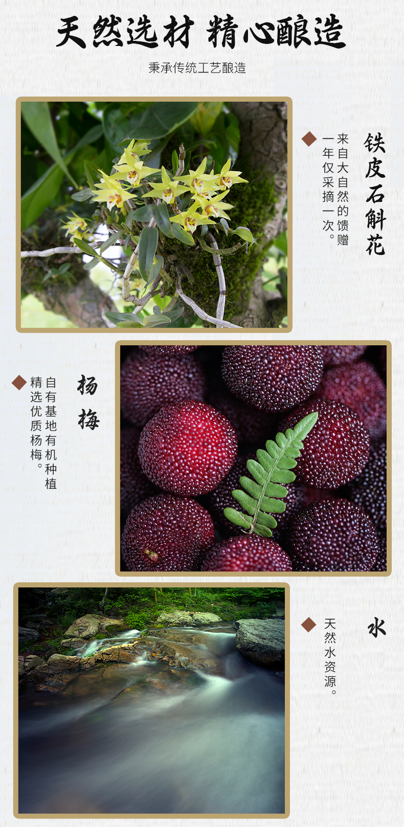 配料:杨梅蒸馏酒、铁皮石斛花、水